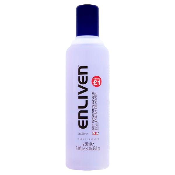 With conditioning glycerin. Against animal testing. Enliven nail polish remover with added Glycerin has been specially formulated to care for your nails whilst removing your nail polish.